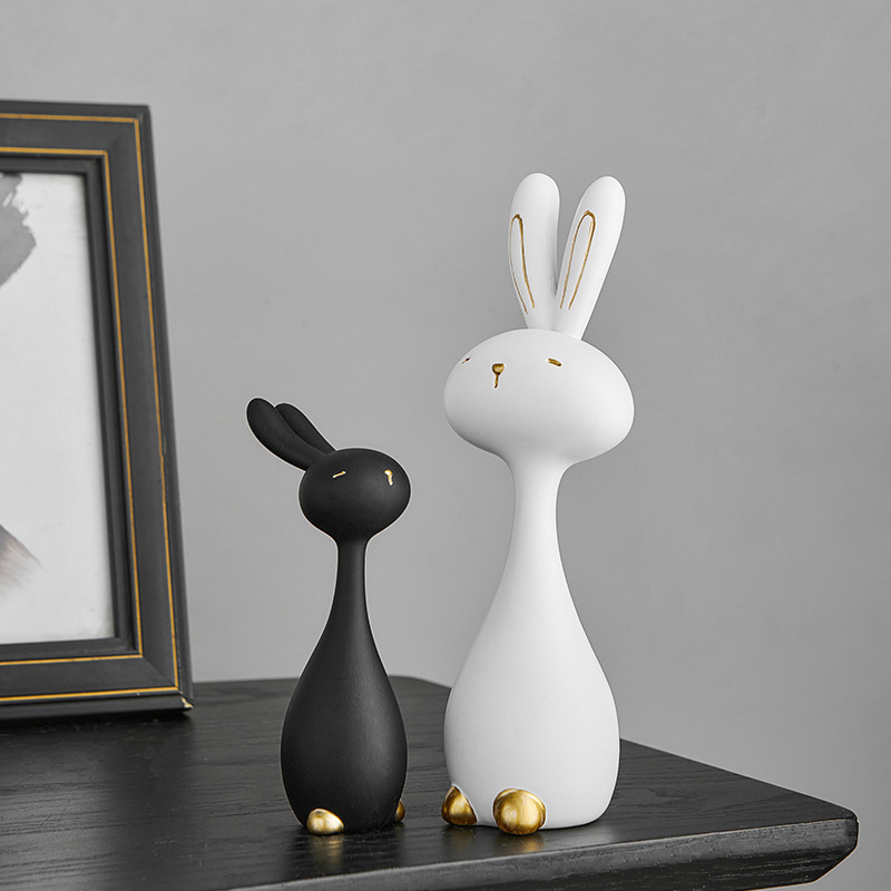 Add a touch of whimsy and modern elegance to your space with this charming black and white rabbit ornament set. Crafted from premium resin, these adorable rabbit figurines embody contemporary minimalist design while bringing warmth and personality to any room.