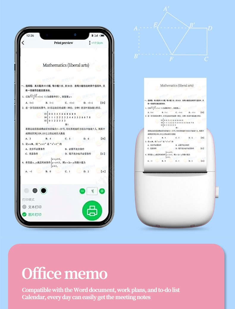 Print anytime, anywhere with this ultra-portable mini Bluetooth printer! Perfect for students, professionals, and anyone who needs quick printing on the go.