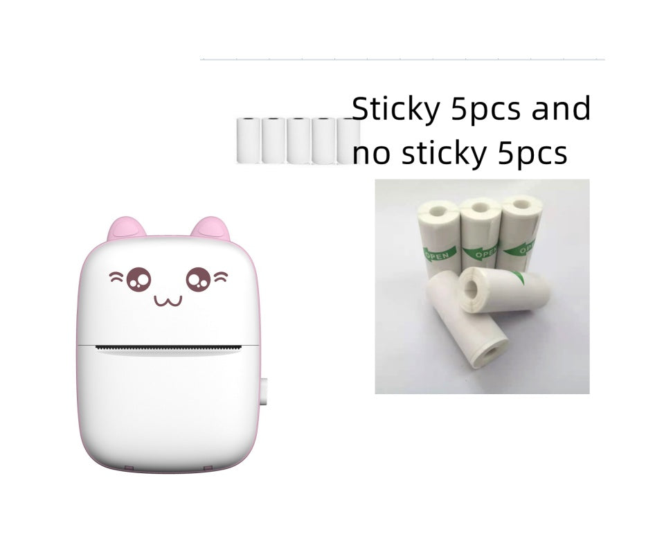 Premium Package (13 Rolls): Printer + 5 rolls printer paper (non-sticky) + 5 rolls self-adhesive paper (sticky) + 3 rolls colored paper (non-sticky) + 5 colored pens