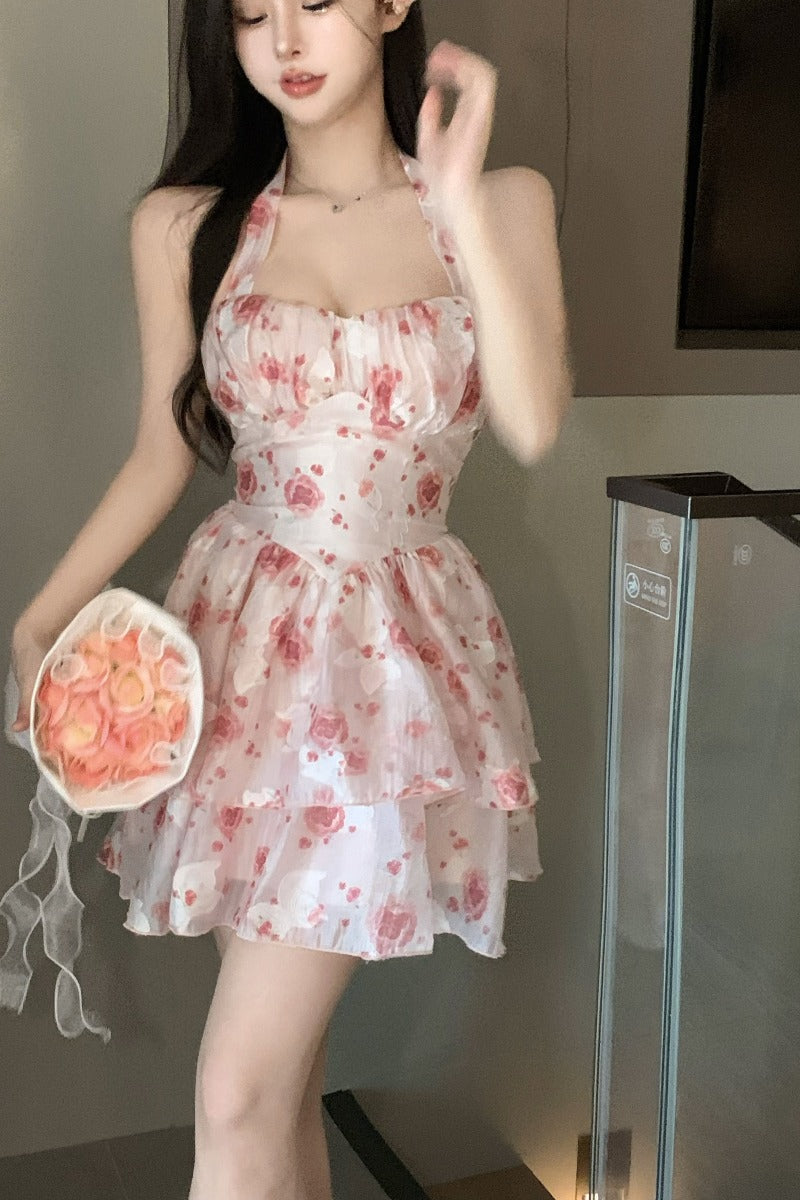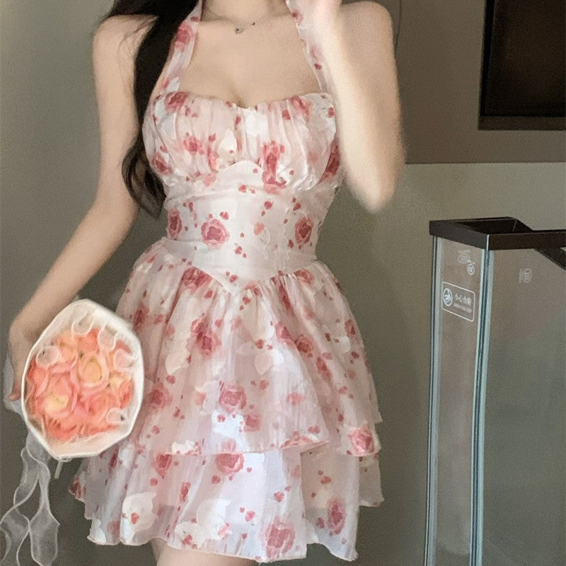Women’s French Sleeveless Halterneck Suspender Dress - Havenora