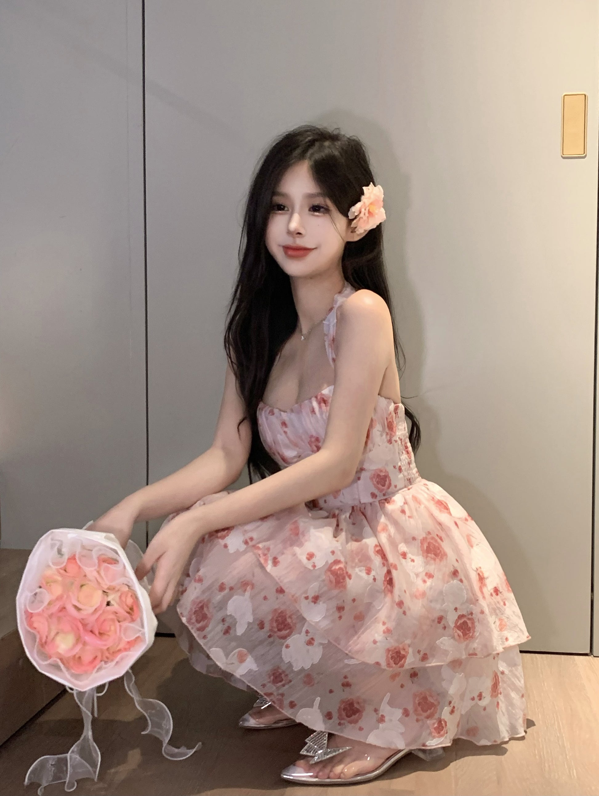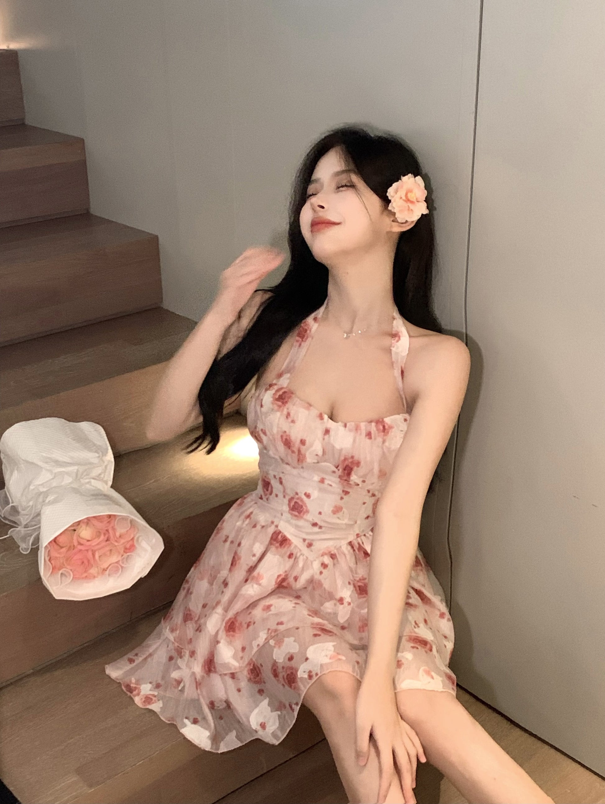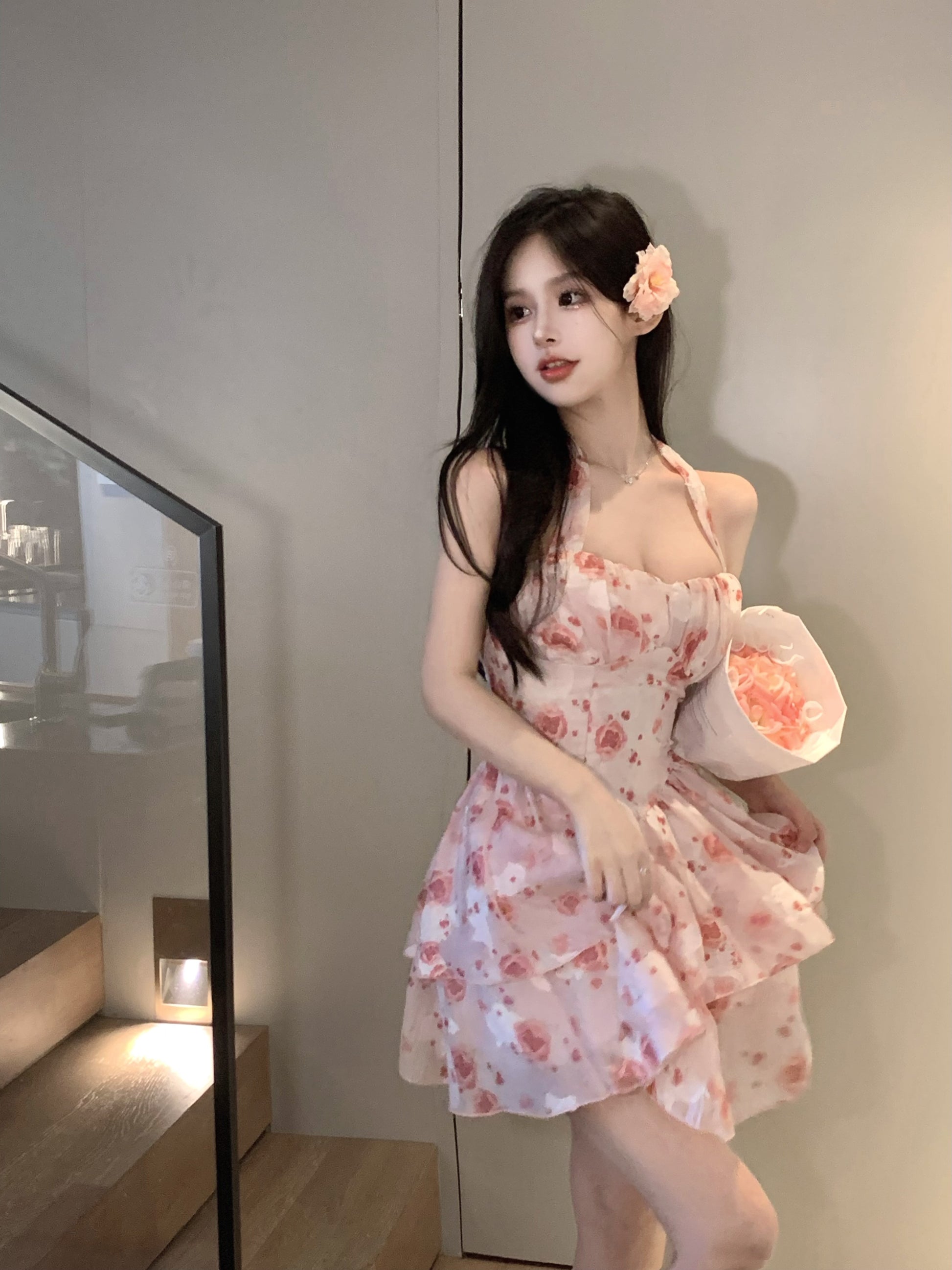 Bring a touch of classic French elegance to your wardrobe with the Havenora Sleeveless Halterneck Suspender Dress. Its flattering A-line silhouette, V-neck front, and high-waist design enhance your natural shape, making it perfect for summer days, parties, and casual outings.